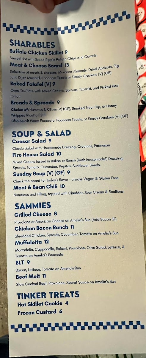 Tinker Coffee - The Firehouse Menu